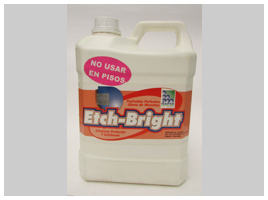 El ETCH-BRIGHT es un enjuague especializado con efectos limpiadores para eliminar residuos profundos de mortero, sales aglomeradas y material suelto o delaminado en ladrillo, concreto o piedra natural.