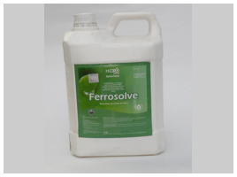 El FERROSOLVE es un enjuague selectivo para remover óxidos y complejos de sales de hierro color ocre o negro que pueden aparecer sobre superficies de concreto, ladrillo o piedra natural.
